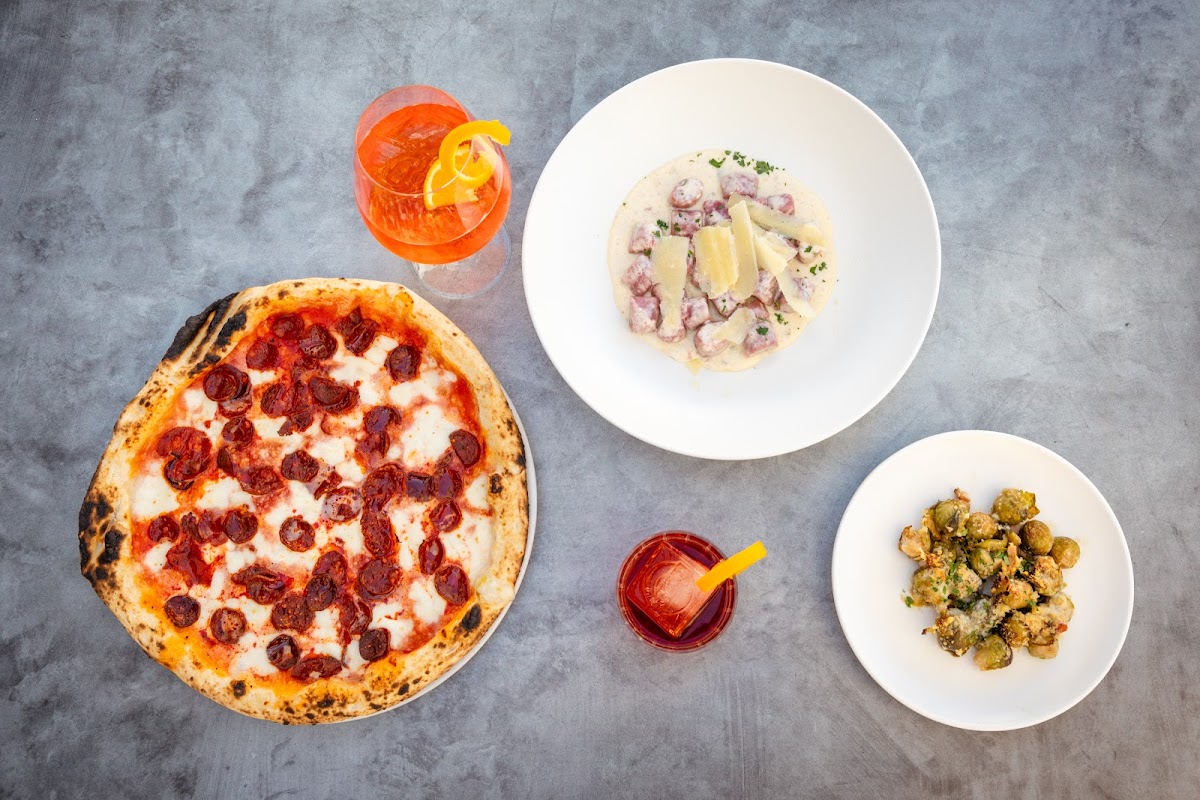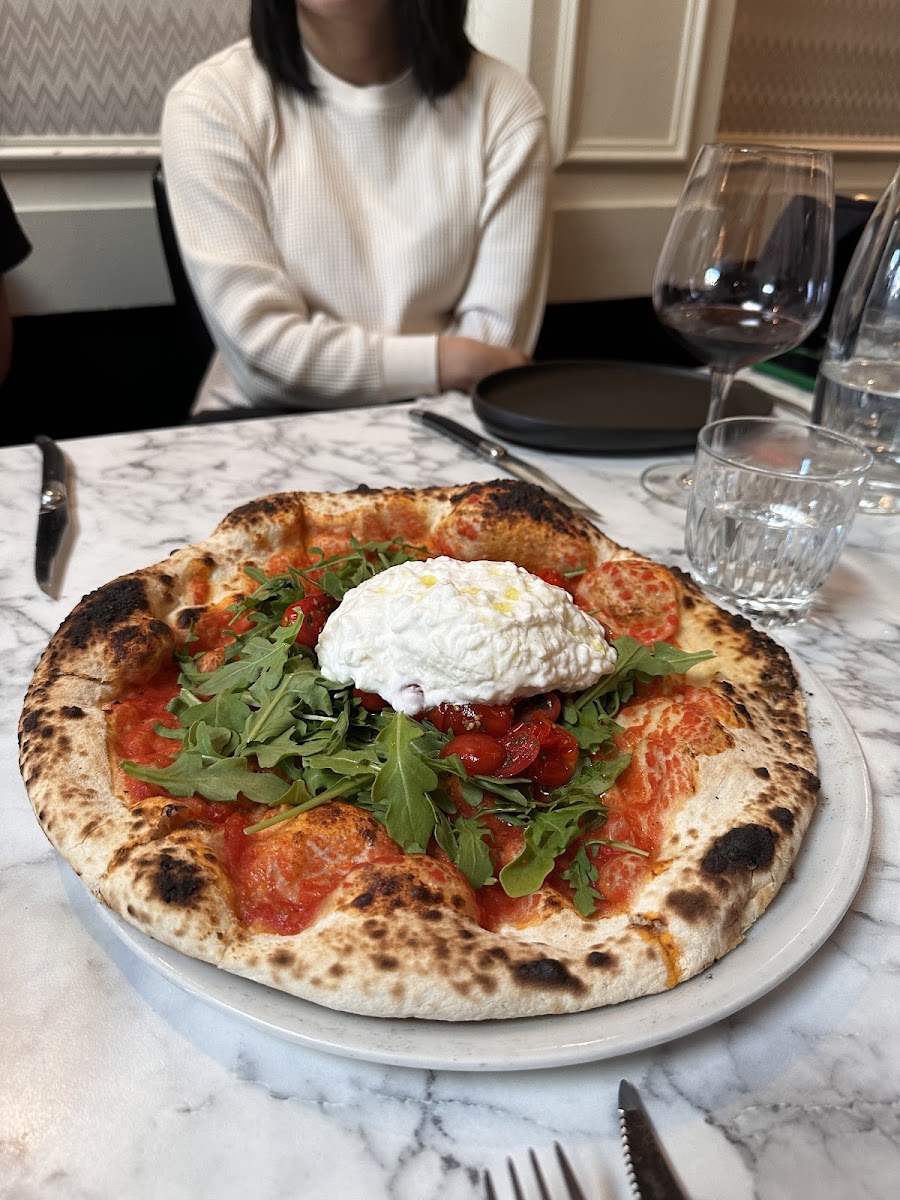 One of the pizzas that keeps coming up in reviews is the margherita, and for good reason. Fresh mozzarella melts into small pools, San Marzano-style tomatoes bring acidity, and basil adds that final aromatic note. During one visit, I overheard a regular describe it as perfectly balanced, and it’s hard to argue. Another standout is the prosciutto-topped option, where the salty cured meat is added after baking to preserve texture, a technique commonly taught in professional Italian kitchens.